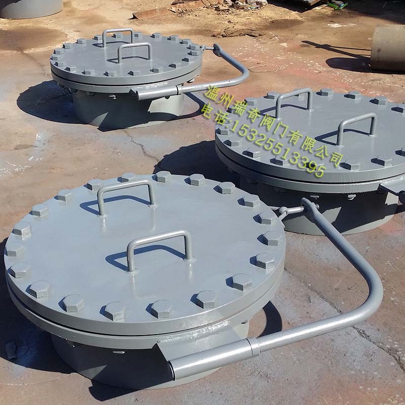 人孔已有成型產(chǎn)品,直徑通常為600mm。人孔中心距地板一般為750mm。便于工作人員在安裝、清洗、維護(hù)時(shí)進(jìn)出油罐或通風(fēng)。非金屬油罐的人孔設(shè)在罐頂上,金屬油罐的人孔設(shè)在罐壁最下圈板上。大都為直徑600mm的圓孔,其中心距底板750mm,為油罐清洗或維修人員進(jìn)出油罐用,又稱作道門。檢修清理油罐時(shí)刻利用人孔進(jìn)行采光和通風(fēng)。立式油罐的容量在5000m3以下時(shí)設(shè)1~2個(gè)人孔,5000m3以上的設(shè)2個(gè)人孔。人孔的安裝應(yīng)與進(jìn)出油管線相隔不大于90°。當(dāng)只設(shè)一個(gè)人孔時(shí),應(yīng)將其置于罐頂透光孔的對(duì)面;當(dāng)設(shè)2個(gè)人孔時(shí),其中一個(gè)設(shè)在透光孔的對(duì)面,另一個(gè)應(yīng)至少與第一個(gè)人孔相隔90°。人孔應(yīng)有一個(gè)設(shè)在進(jìn)出油管右側(cè)附近,并盡量使人孔正對(duì)罐室密閉門,以便人員進(jìn)出、維修油罐和通風(fēng)接管用。由于人孔安裝在油罐的最下層體圈上,防滲漏就顯得特別重要。要求兩法蘭結(jié)合面必須保證其平直度,無飄扭現(xiàn)象。加強(qiáng)板和法蘭應(yīng)盡量在整塊鋼板上切割而不拼接。法蘭和蓋板上加工有密封圈,在施工中要特別注意保護(hù)。密封用3mm厚石棉橡膠墊片,不允許有折裂。安裝人孔蓋板上緊螺栓時(shí),要成對(duì)角均勻用力,以防孔蓋變形。