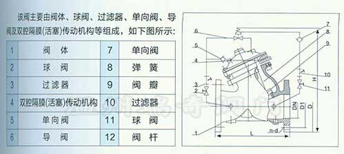 DYH41X型Y型快閉止回閥由閥體、閥蓋、中心軸、銅套、閥座、閥瓣等主要零件組成,通過控制閥瓣的上下運(yùn)動來實現(xiàn)閥門的啟閉。開泵時,閥瓣在水底推力下上升,開啟閥門,同時彈簧被簧力的作用下迅速關(guān)閉,當(dāng)水流接近于0時,閥瓣完全關(guān)閉。無水倒流現(xiàn)象,同時因水不能倒流,不產(chǎn)生動能,便防止了水錘的產(chǎn)生。