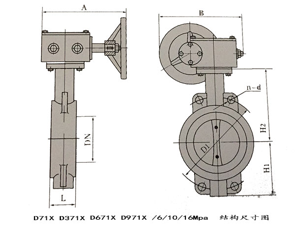 六、【軟密封蝸輪對夾蝶閥D371X外形連接尺寸】單位:mm