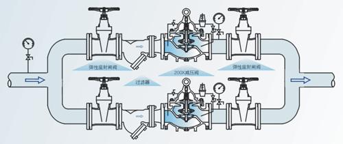 給水及其他工業(yè)給水系統(tǒng),通過調(diào)節(jié)減壓導(dǎo)閥,即可調(diào)節(jié)主閥的出口壓力。出口壓力不因進口壓力、進口流量的